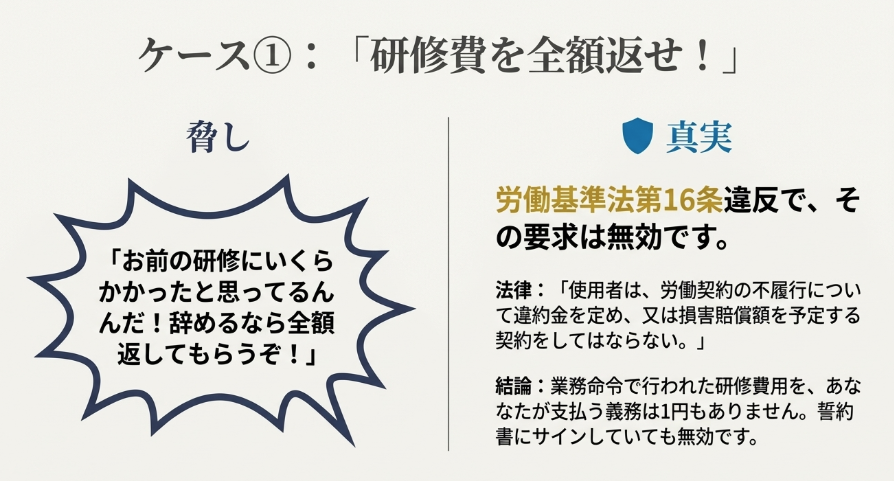 したがって、あなたは研修費を1円も支払う義務はありません。