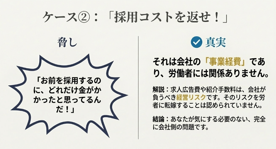 どのような人材を採用し、どのように定着させるかは会社の経営課題であり、そのリスクを労働者に転嫁することはできません。