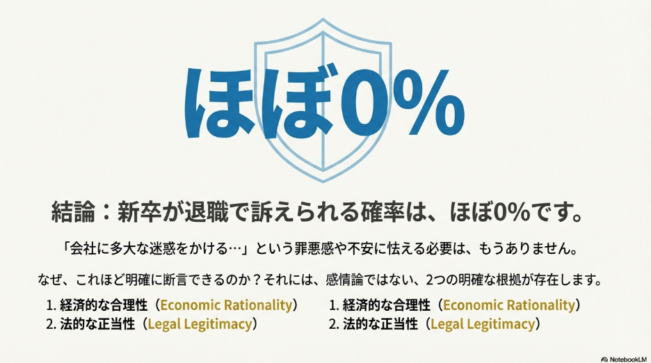 これだけ多くの新卒社員が早期退職しているにもかかわらず、「新卒が退職して訴えられた」というニュースや裁判例がほとんど出てこないのはなぜでしょうか?
