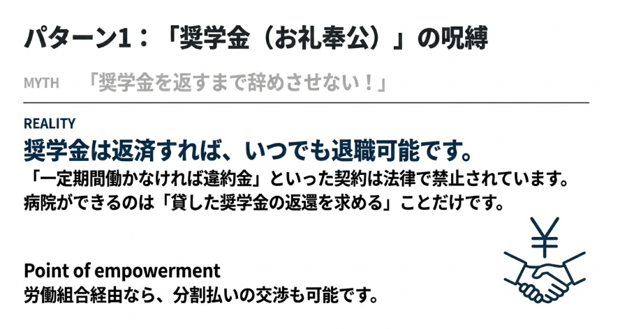 パターン①:「奨学金(お礼奉公)を返済するまで辞めさせない!」