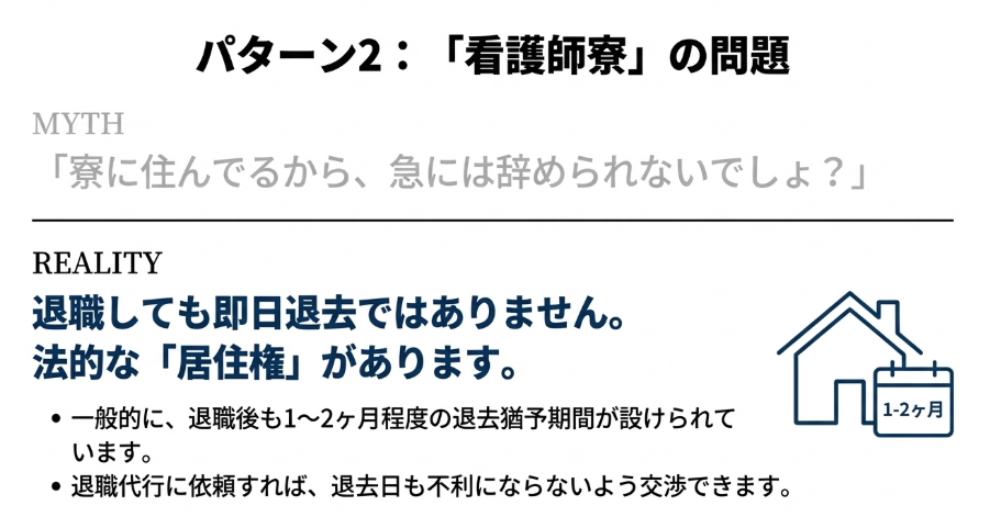 パターン②:「寮に住んでるんだから、急に辞められないでしょ?」