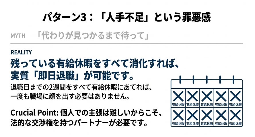 パターン③:「あなたが抜けたらシフトに穴が開く。代わりが見つかるまで待って」