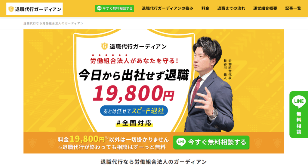 という方におすすめなのが、『退職代行ガーディアン』です。