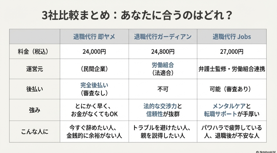 新卒・1〜2年目でも安心して利用できる退職代行サービス3社をランキング形式で紹介します。