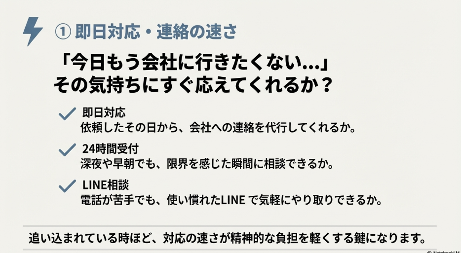 ランキングを紹介する前に、まずは失敗しない退職代行選びの基準を整理しておきます。