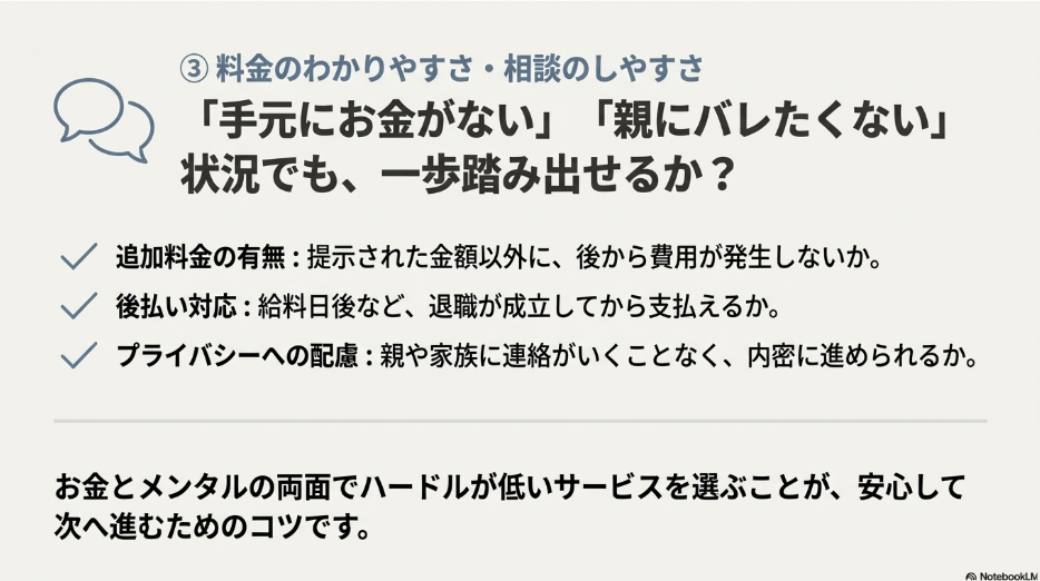 など、お金とメンタルの両面でハードルが低いサービスを選ぶことが、安心して一歩踏み出すコツです。