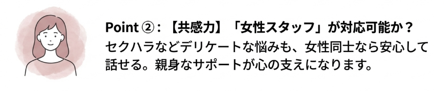ポイント②:【共感力】「女性スタッフ」が対応してくれるか?