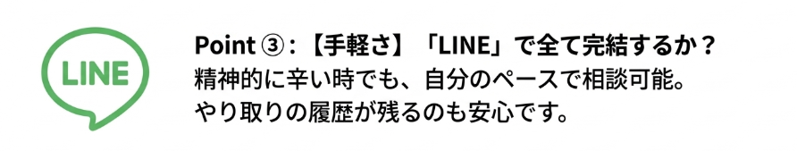 ポイント③:【手軽さ】「LINE」で相談から申込みまで完結するか?