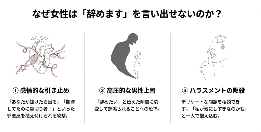 なぜ、これほど多くの女性が退職代行を選ぶのでしょうか。